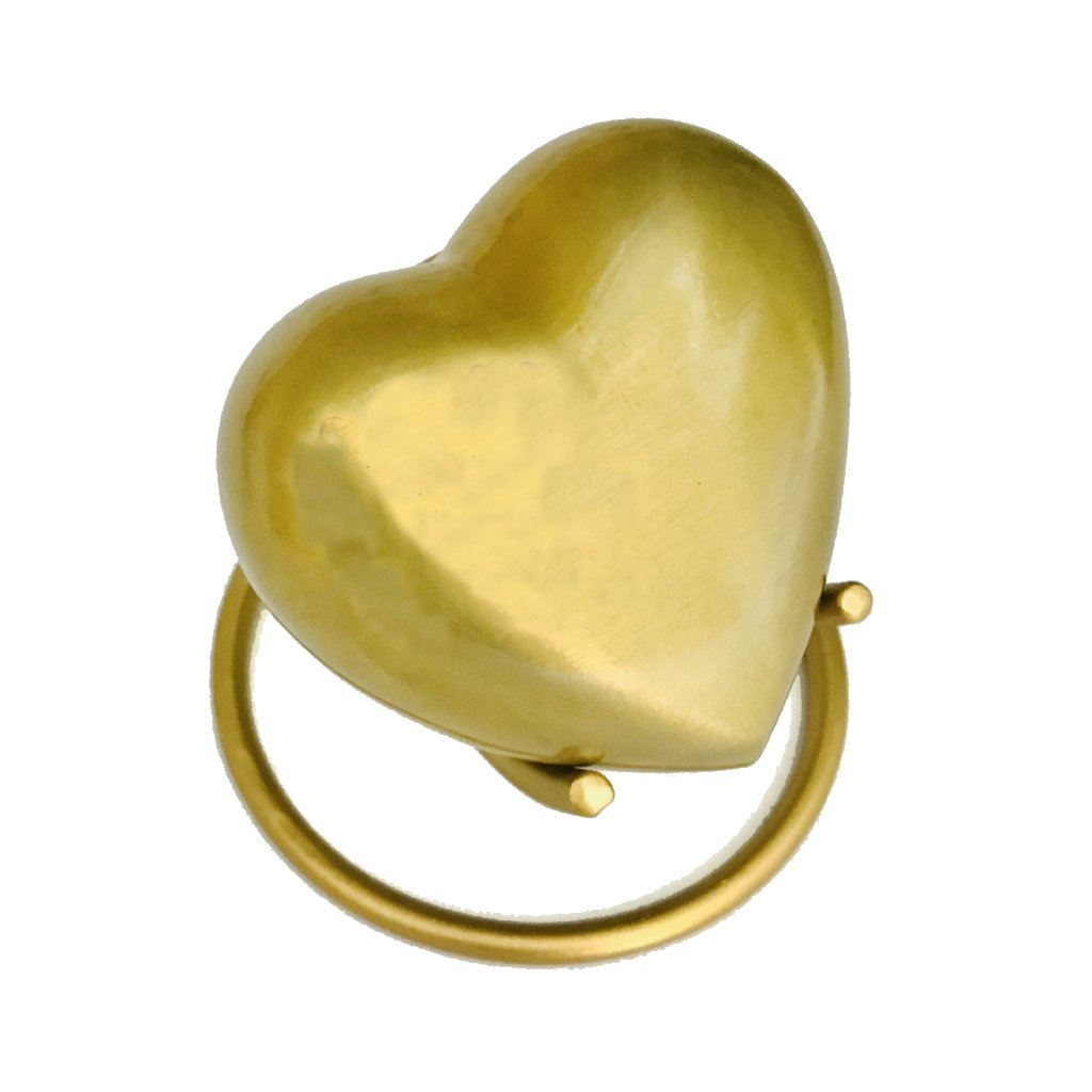 - Classic Heart pet cremation keepsakes urns are available in satin gold finish.