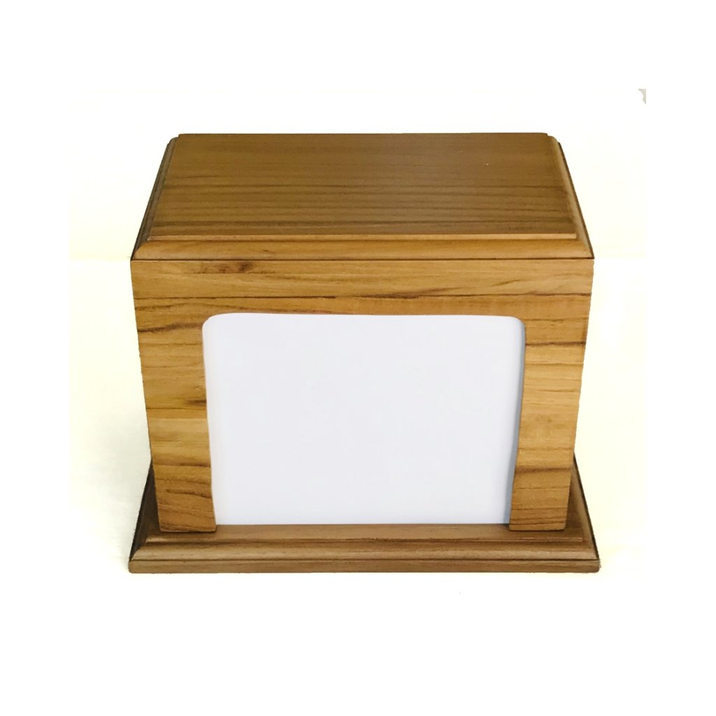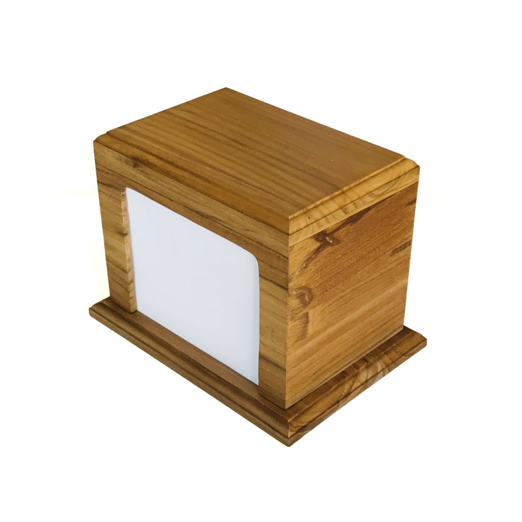 - This extra large size window style engravable urns for ashes is created from pristine acacia.